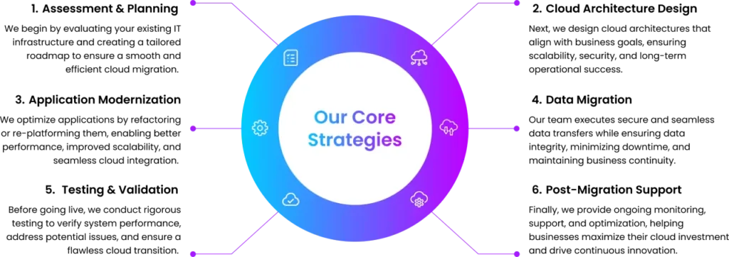 We begin by evaluating your existing IT infrastructure and creating a tailored roadmap to ensure a smooth and efficient cloud migration.
